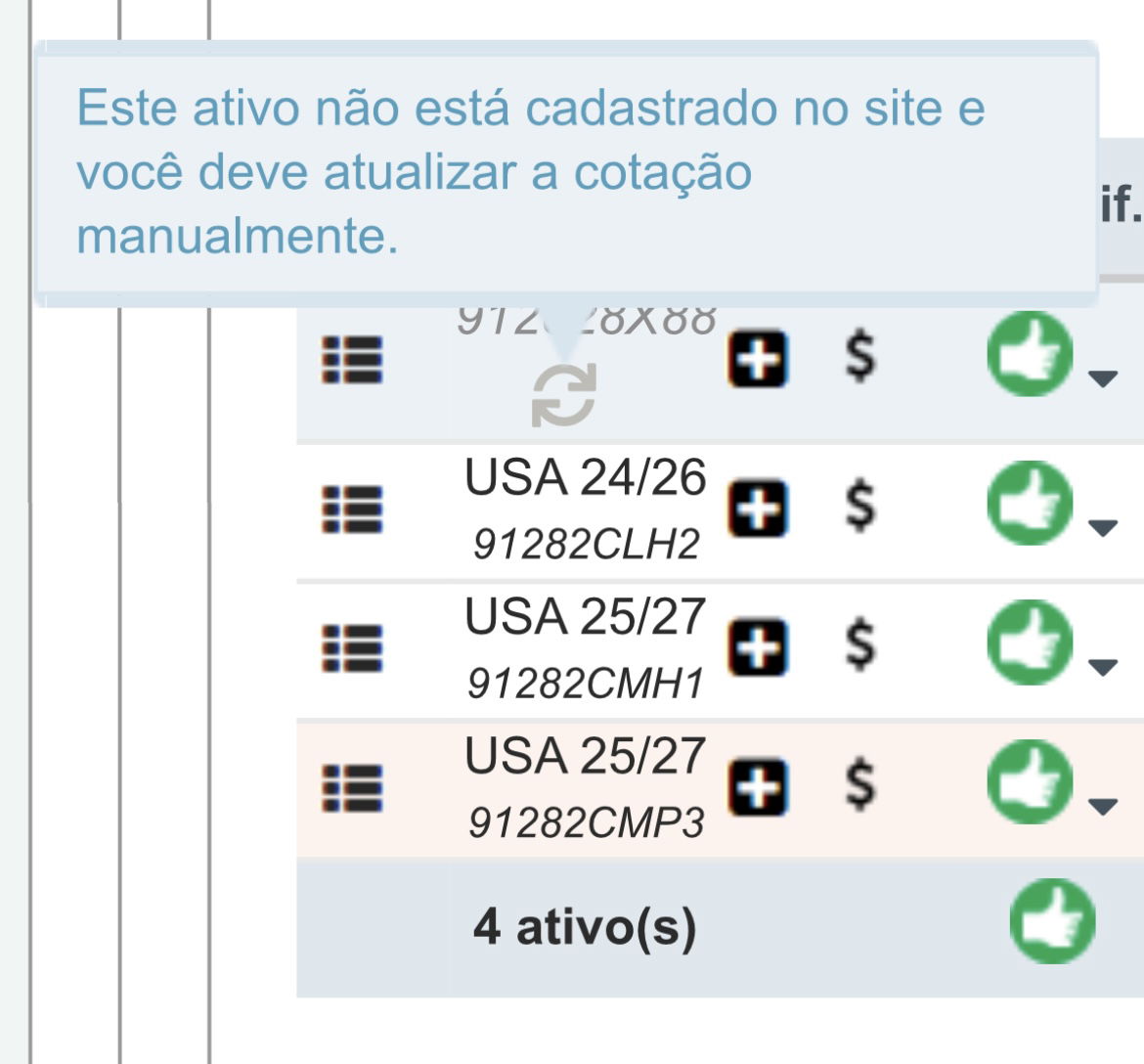 5 Cadastro de Bond: US Treasury comentada em 10/03/2025 18:57 Assuntos Gerais Giordi em 08/03/25 14:22 comentada em 10/03/2025 18:57 À equipe da Bastter,Seria possível cadastrar o US Treasury (CUSIP 912828X88)?